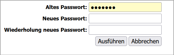 Optionen / Password ändern zur Eingabemaske.